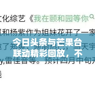 隨著互聯(lián)網的普及和科技的飛速發(fā)展,新聞獲取方式也日益多樣化,今日頭條作為一款集新聞、資訊、娛樂為一體的移動應用,深受用戶喜愛,芒果臺作為湖南衛(wèi)視的時尚娛樂品牌,其節(jié)目內容豐富多樣,吸引了大量觀眾,本文將圍繞“今日頭條新聞芒果臺回放”這一主題,探討其背后的新聞價值與娛樂魅力。